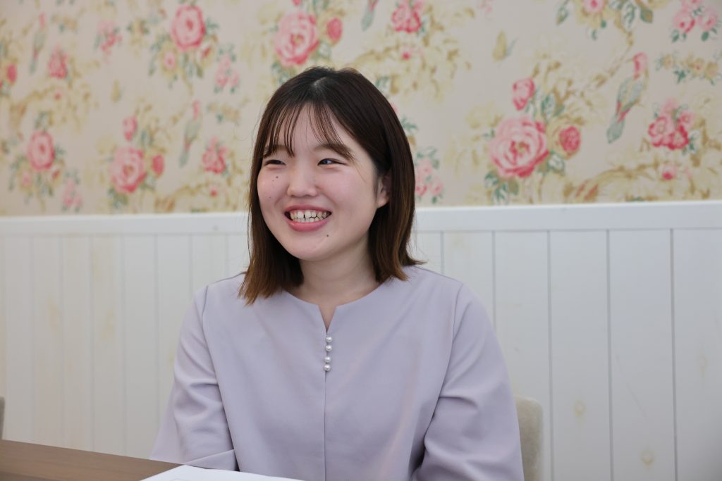 入社の決め手は、「インターンシップで感じたスタッフ同士の距離の近さや、一人ひとりに真摯に向き合ってくれる会社の姿勢に共感したから」とのことです。