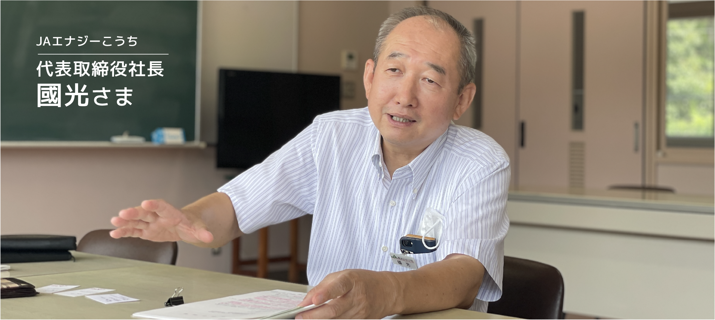 JAエナジーこうち 代表取締役社長 國光さまからは、会社概要、経営方針や今後の展望などJAエナジーこうちが高知県で果たす役割や、会社が今後目指すビジョンなど会社全体の支援に関するお話を伺いました。