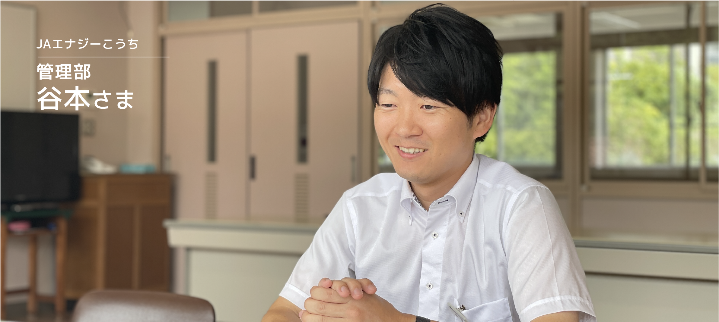 谷本さまは、JAエナジーこうちの管理部で働いておられます。大阪での技術職としてのキャリアを経て、Uターンをする形で高知県に戻り、